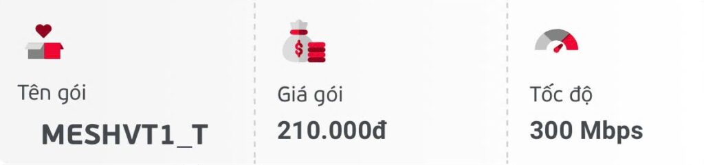 – Nhờ kết hợp giữa Wifi truyền thống (Modem) và các thiết bị mở rộng vùng phủ, khách hàng sử dụng gói cước MESHVT1 sẽ được trải nghiệm vùng phủ wifi rộng hơn, tốc độ và độ ổn định cao hơn, kết nối wifi liền mạch thông qua 1 tài khoản wifi (SSID).