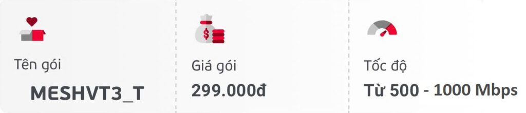 – Nhờ kết hợp giữa Wifi truyền thống (Modem) và các thiết bị mở rộng vùng phủ, khách hàng sử dụng gói cước MESHVT3 sẽ được trải nghiệm vùng phủ wifi rộng hơn, tốc độ và độ ổn định cao hơn, kết nối wifi liền mạch thông qua 1 tài khoản wifi (SSID).